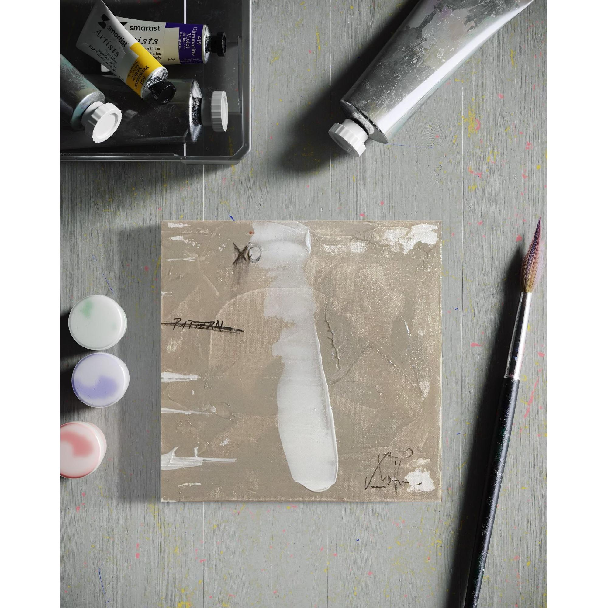 A mysterious blend of subtle textures and muted tones, this painting whispers quiet secrets through its gentle layers. Soft brushstrokes and diffused hues merge into one another, creating a surface that feels both serene and enigmatic. The restrained palette—cool greys, warm neutrals, and faint traces of color—suggests an atmosphere suspended between silence and memory. Each mark carries intention yet resists definition, inviting the viewer to pause, to sense rather than to see. It is a work that unfolds slowly, revealing its essence not in boldness, but in quiet persistence—like a secret shared only with those who truly listen.
