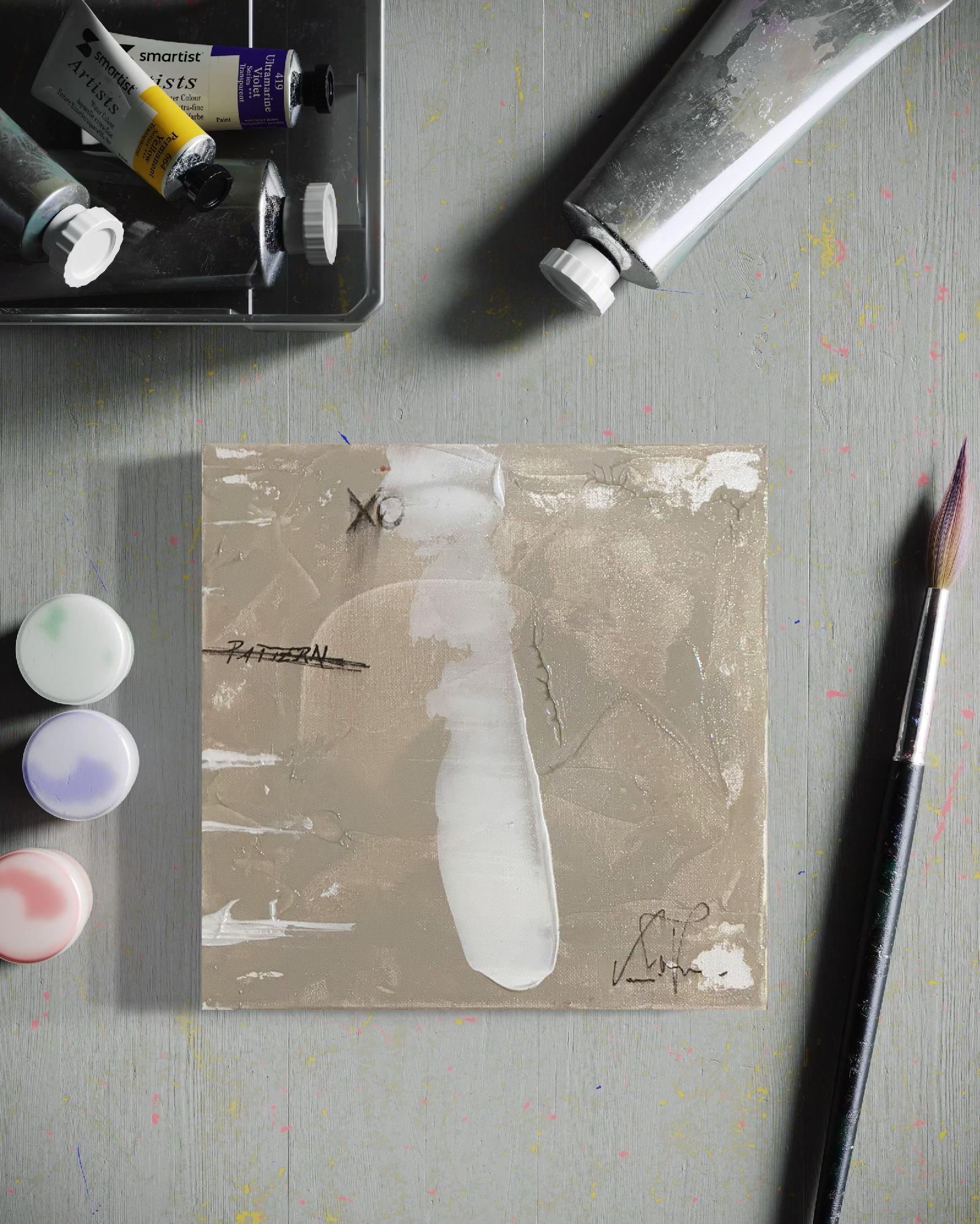 Un misterioso intreccio di texture sottili e toni attenuati, questo dipinto sussurra segreti silenziosi attraverso i suoi strati delicati. Pennellate morbide e tonalità diffuse si fondono l’una nell’altra, creando una superficie che appare al tempo stesso serena ed enigmatica. — grigi freddi, neutri caldi e lievi tracce di colore — evoca un’atmosfera sospesa tra il silenzio e la memoria. Ogni segno è carico d’intenzione ma resiste alla definizione, invitando l’osservatore a fermarsi, a percepire più che a vedere. È un’opera che si rivela lentamente, svelando la propria essenza non con audacia, ma con una quieta persistenza — come un segreto condiviso solo con chi sa davvero ascoltare.